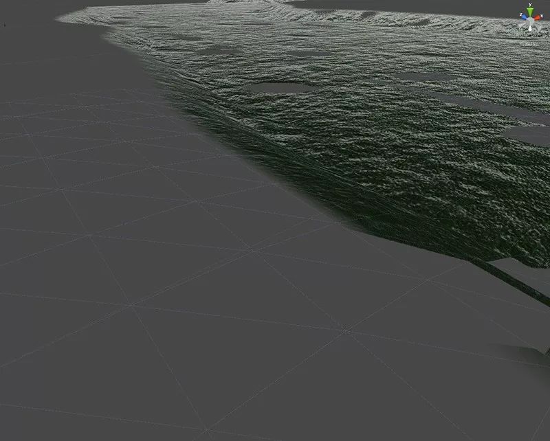 水的网格是克隆地形网格得到的。没有使用深度图,而是选择通过移动顶点到水面高度(vertexHeight=waterHeight)得到了“免费的”深度缓冲区。